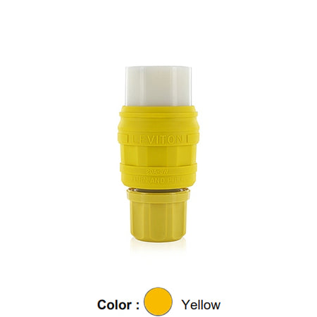 Leviton 79W48-C, Wetguard Watertight Straight Blade Connector for Single Inlet, Industrial Grade, 20A 250V, NEMA 6-20R, 2-Pole, 3-Wire, Grounding, Yellow