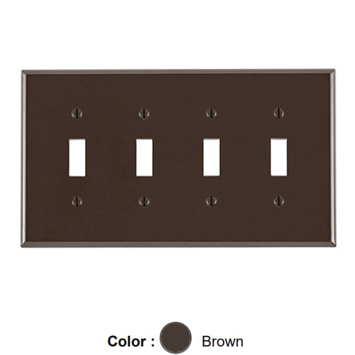 Leviton 80512, 4-Gang Toggle Device Switch Wallplate, Midway Size, Thermoset, Device Mount, Brown