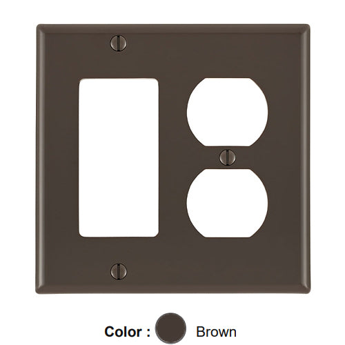 Leviton 80746, 2-Gang 1-Duplex and 1-Decora/GFCI Device Combination Wallplate, Standard Size, Thermoplastic Nylon, Device Mount, Brown