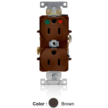 Leviton 8200-IGB, Standard Straight Blade Duplex Receptacle, Heavy-Duty Hospital Grade, Smooth Face, Isolated Ground, 15A 125V, NEMA 5-15R, 2-Pole, 3-Wire, Back and Side Wire, Brown