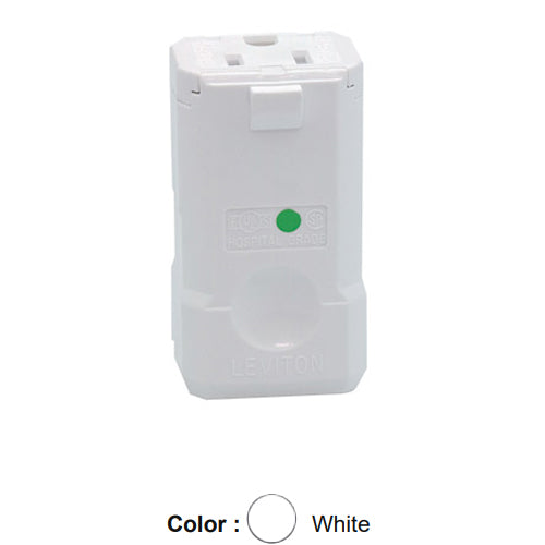 Leviton 8259-V, Python Straight Blade Connector, Hospital Grade, 15A 125V, NEMA 5-15R, 2-Pole, 3-Wire, Grounding, White