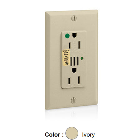 Leviton 8280-I, Decora Plus Surge Protective Duplex Receptacle, Heavy-Duty Hospital Grade, Audible Alarm, Indicator Light, 15A 125V, NEMA 5-15R, 2-Pole, 3-Wire, Back and Side Wire, Ivory
