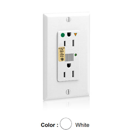 Leviton 8280-IGW, Decora Plus Surge Protective Isolated Ground Duplex Receptacle, Heavy-Duty Hospital Grade, Audible Alarm, Indicator Light, 15A 125V, NEMA 5-15R, 2-Pole, 3-Wire, Back and Side Wire, White