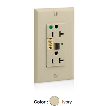 Leviton 8380-I, Decora Plus Surge Protective Duplex Receptacle, Heavy-Duty Hospital Grade, Audible Alarm, Indicator Light, 20A 125V, NEMA 5-20R, 2-Pole, 3-Wire, Back and Side Wire, Ivory