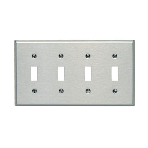 Leviton 84012, 4-Gang Toggle Device Switch Wallplate, Standard Size, 430 Stainless Steel, Device Mount, Stainless Steel
