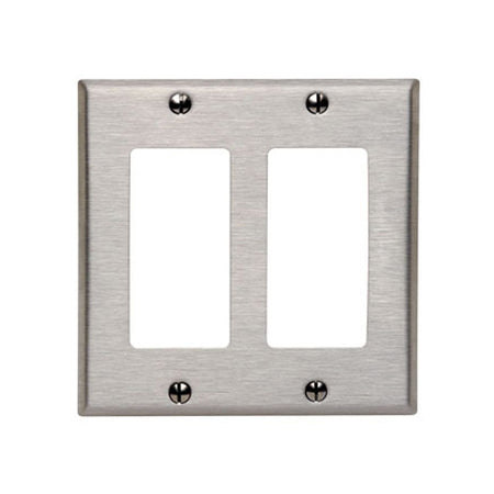 Leviton 84409-40, 2-Gang Decora/GFCI Device Decora Wallplate, Standard Size, 302 Stainless Steel, Device Mount, Stainless Steel, Brushed Finish, 2 Packs