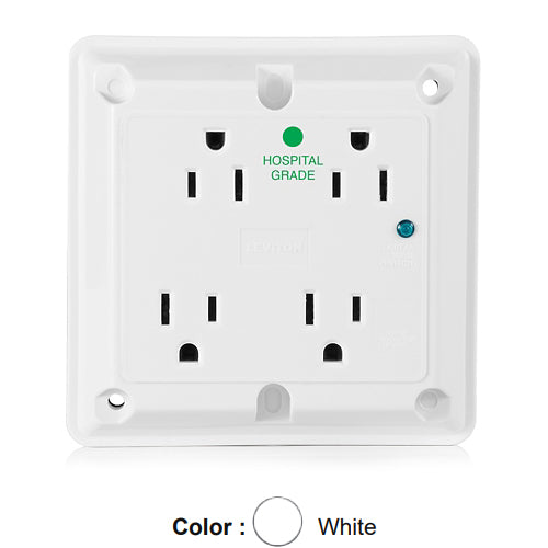 Leviton 8480-W, 4-in-1 Surge Protective Quadruplex Receptacle, Heavy-Duty Hospital Grade, Indicator Light, 15A 125V, NEMA 5-15R, 2-Pole, 3-Wire, Side Wire Only, White