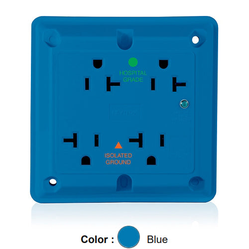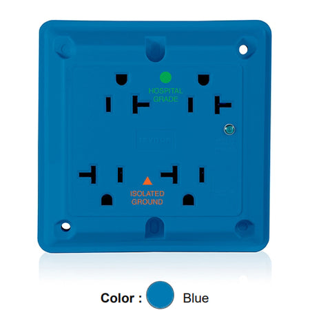 Leviton 8490-IGB, 4-in-1 Surge Protective Isolated Ground Quadruplex Receptacle, Heavy-Duty Hospital Grade, Indicator Light, 20A 125V, NEMA 5-20R, 2-Pole, 3-Wire, Side Wire Only, Blue