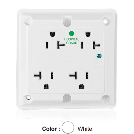 Leviton 8490-W, 4-in-1 Surge Protective Quadruplex Receptacle, Heavy-Duty Hospital Grade, Indicator Light, 20A 125V, NEMA 5-20R, 2-Pole, 3-Wire, Side Wire Only, White