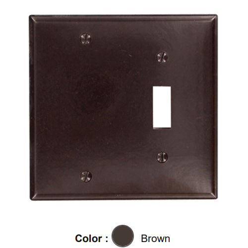 Leviton 85006, 2-Gang 1-Toggle and 1-Blank Device Combination Wallplate, Standard Size, Thermoset, Box Mount, Brown, 2 Packs