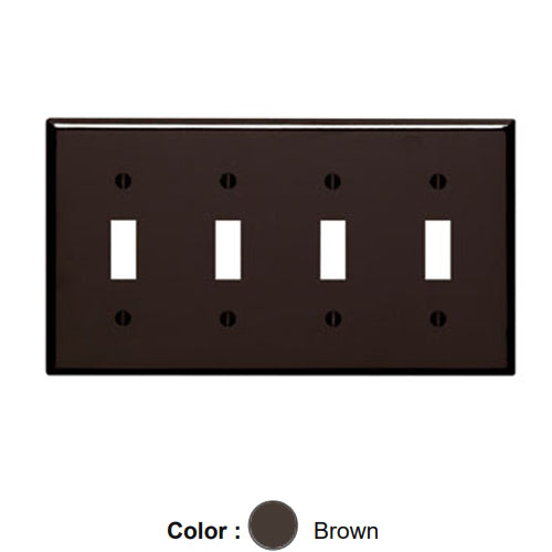Leviton 85012, 4-Gang Toggle Device Switch Wallplate, Standard Size, Thermoset, Device Mount, Brown, 5 Packs