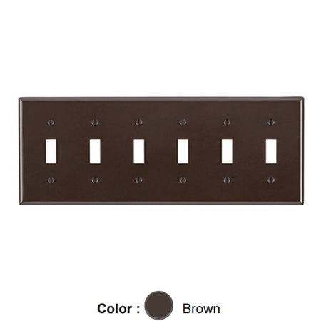 Leviton 85036, 6-Gang Toggle Device Switch Wallplate, Standard Size, Thermoset, Device Mount, Brown