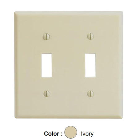 Leviton 86009, 2-Gang Toggle Device Switch Wallplate, Standard Size, Thermoset, Device Mount, Ivory, 10 Packs