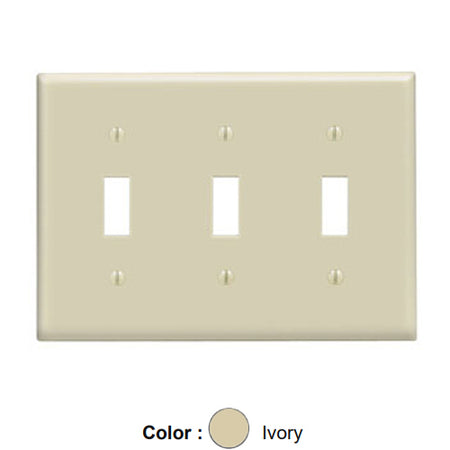Leviton 86011, 3-Gang Toggle Switch Wallplate, Standard Size, Thermoset, Device Mount, Ivory, 10 Packs
