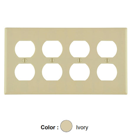 Leviton 86041, 4-Gang Duplex Device Receptacle Wallplate, Standard Size, Thermoset, Device Mount, Ivory
