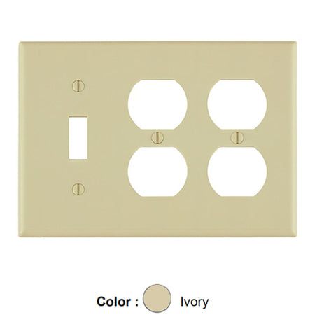 Leviton 86047, 3-Gang 1-Toggle 2-Duplex Device Combination Wallplate, Standard Size, Thermoset, Device Mount, Ivory