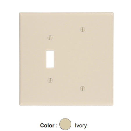 Leviton 86106, 2-Gang 1-Toggle and 1-Blank Device Combination Wallplate, Oversized, Thermoset, Box Mount, Ivory