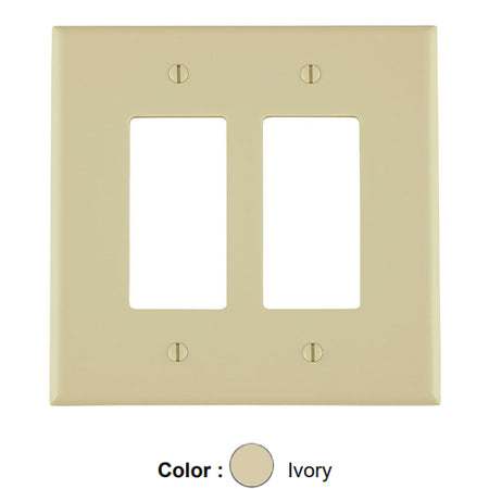 Leviton 86602, 2-Gang Decora/GFCI Device Decora Wallplate, Oversized, Thermoset, Device Mount, Ivory