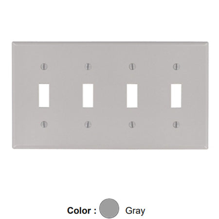 Leviton 87012, 4-Gang Toggle Device Switch Wallplate, Standard Size, Thermoset, Device Mount, Gray, 5 Packs