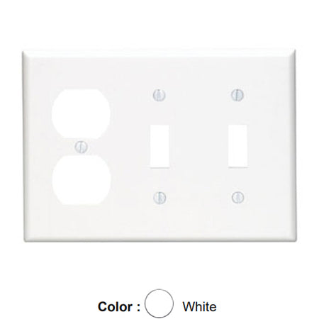 Leviton 88021, 3-Gang 2-Toggle 1-Duplex Device Combination Wallplate, Standard Size, Thermoset, Device Mount, White