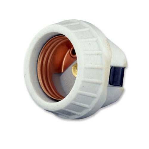 Leviton 8875, Unglazed Porcelain Lampholder, Medium Base, One-Piece, Keyless, Incandescent, Front Mount, Single Circuit, Back Wired, Shallow Back, White, 2 Packs