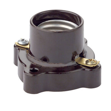 Leviton 9063, Phenolic Lampholder, Medium Base, One-Piece, Keyless, Incandescent, Pony Cleat, Single Circuit, Open Terminal, Brown