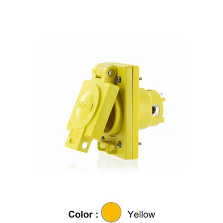 Leviton 90W33-S, Wetguard Watertight Straight Blade Single Outlet, Industrial Grade, 20A 125V, NEMA 5-20R, 2-Pole, 3-Wire, Grounding, Yellow