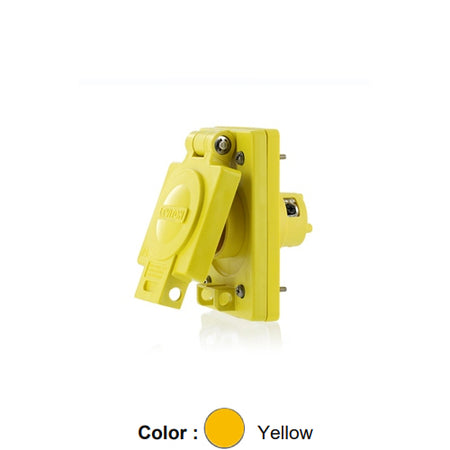 Leviton 90W49-S, Wetguard Watertight Straight Blade Single Outlet, Industrial Grade, 15A 250V, NEMA 6-15R, 2-Pole, 3-Wire, Grounding, Yellow