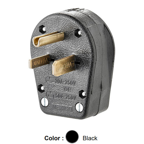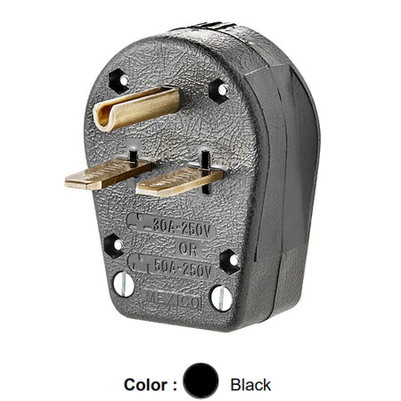 Leviton 931-E, Straight Blade Angle Plug, Commercial Grade, 30/50A 250V, NEMA 6-30P/6-50P, 2-Pole, 3-Wire, Grounding, Black