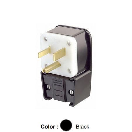 Leviton 9550-P, Straight Blade Angled Plug, Industrial Grade, 50A 125V, NEMA 5-50P, 2-Pole, 3-Wire, Grounding, Black