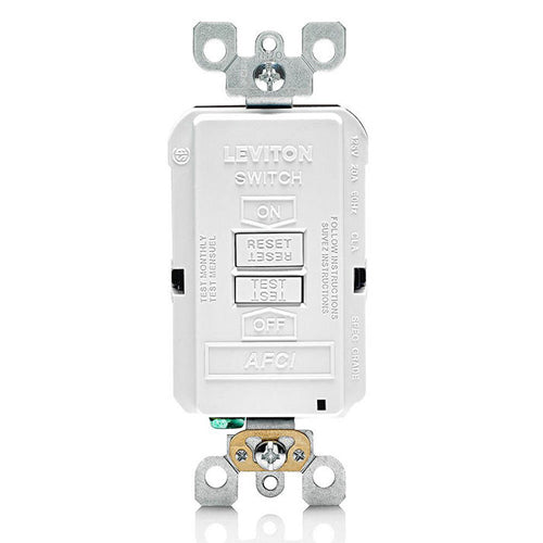 Leviton AFRBF-W, SmartlockPro Branch Circuit AFCI Blank Face Receptacle, LED Indicator Light, 20 Amp, 125 Volt, Back & Side Wired, Self-Grounding, White