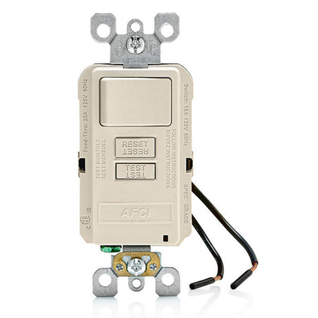 Leviton AFSW1-T, SmartlockPro Outlet Branch Circuit AFCI Combination Switch, LED Indicator Light, Wallplate Included, 15 Amp, 125 Volt, Back & Side Wired, Self-Grounding, Light Almond