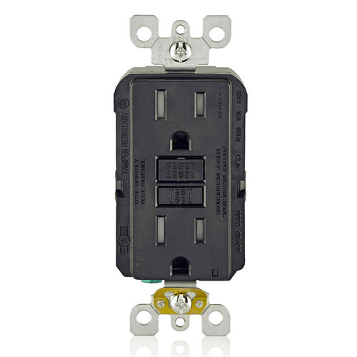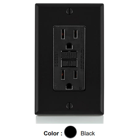 Leviton AFTR1-E, SmartlockPro Branch Circuit AFCI Duplex Receptacle, Tamper-Resistant, LED Indicator Light, Wallplate Included, 15A 125V, NEMA 5-15R, Back & Side Wired, Self-Grounding, Black