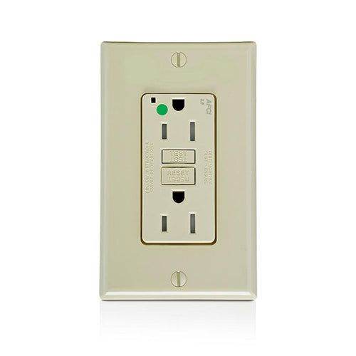 Leviton AFTR1-HGI, SmartlockPro Branch Circuit AFCI Duplex Receptacle, Tamper-Resistant, LED Indicator Light, Heavy-Duty Hospital Grade, Wallplate Included, 15A 125V, NEMA 5-15R, Back & Side Wired, Self-Grounding, Ivory