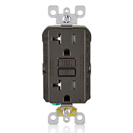 Leviton AFTR2, SmartlockPro Branch Circuit AFCI Duplex Receptacle, Tamper-Resistant, LED Indicator Light, Wallplate Included, 20A 125V, NEMA 5-20R, Back & Side Wired, Self-Grounding, Brown
