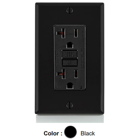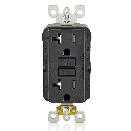 Leviton AFTR2-E, SmartlockPro Branch Circuit AFCI Duplex Receptacle, Tamper-Resistant, LED Indicator Light, Wallplate Included, 20A 125V, NEMA 5-20R, Back & Side Wired, Self-Grounding, Black