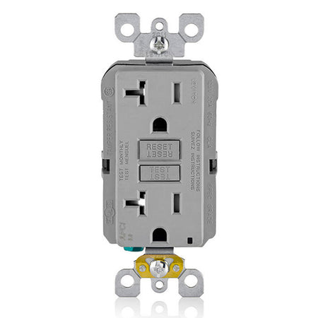 Leviton AFTR2-GY, SmartlockPro Branch Circuit AFCI Duplex Receptacle, Tamper-Resistant, LED Indicator Light, Wallplate Included, 20A 125V, NEMA 5-20R, Back & Side Wired, Self-Grounding, Gray