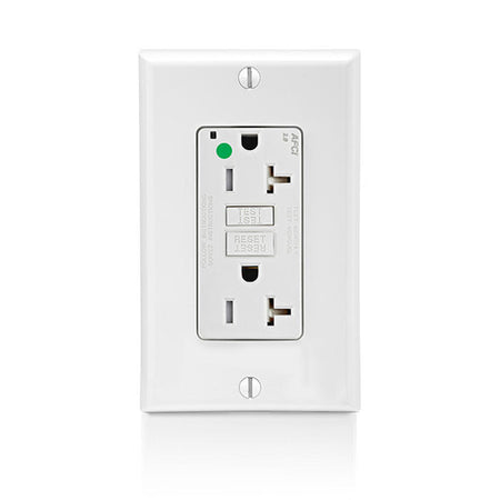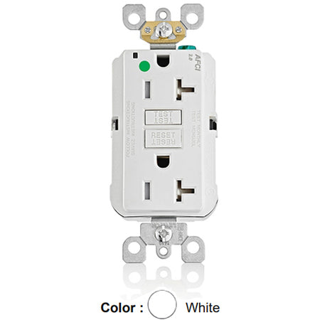 Leviton AFTR2-HGW, SmartlockPro Branch Circuit AFCI Duplex Receptacle, Tamper-Resistant, LED Indicator Light, Heavy-Duty Hospital Grade, Wallplate Included, 20A 125V, NEMA 5-20R, Back & Side Wired, Self-Grounding, White
