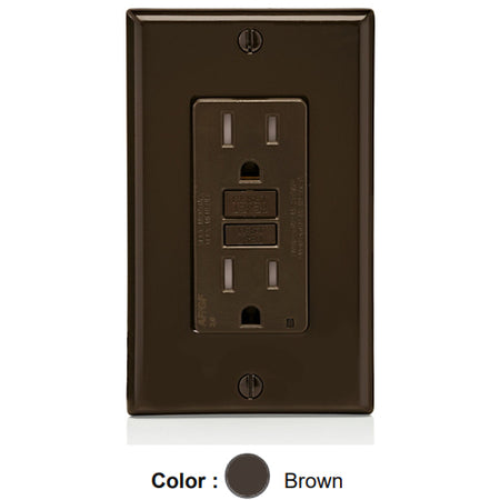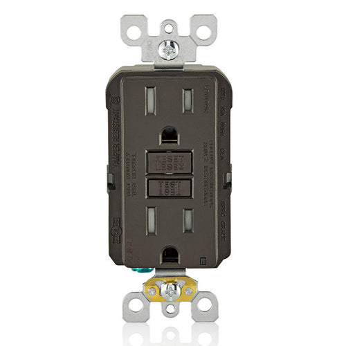 Leviton AGTR1, SmartlockPro Dual Function AFCI/GFCI Duplex Receptacle, Tamper-Resistant, LED Indicator Light, Wallplate Included, 15A 125V, NEMA 5-15R, Back & Side Wired, Self-Grounding, Brown