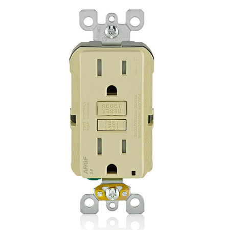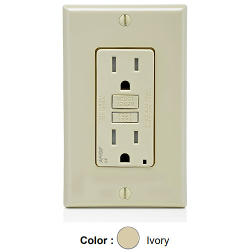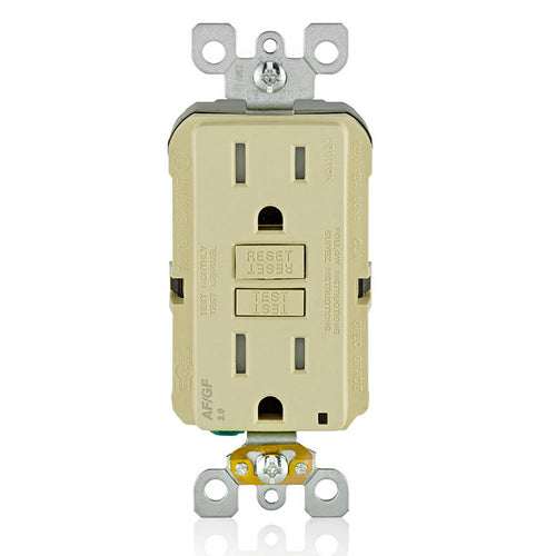 Leviton AGTR1-I, SmartlockPro Dual Function AFCI/GFCI Duplex Receptacle, Tamper-Resistant, LED Indicator Light, Wallplate Included, 15A 125V, NEMA 5-15R, Back & Side Wired, Self-Grounding, Ivory