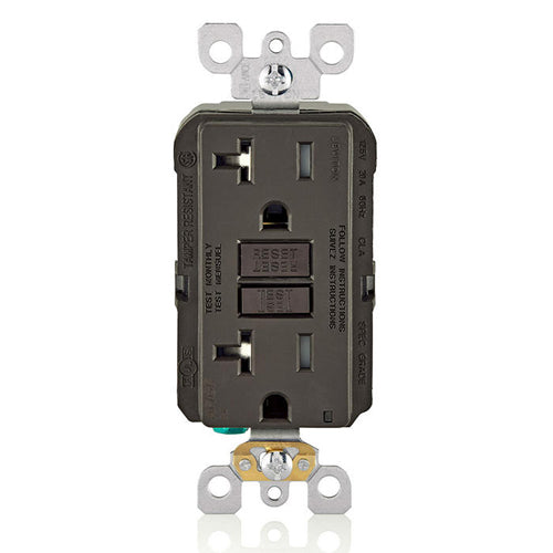 Leviton AGTR2, SmartlockPro Dual Function AFCI/GFCI Duplex Receptacle, Tamper-Resistant, LED Indicator Light, Wallplate Included, 20A 125V, NEMA 5-20R, Back & Side Wired, Self-Grounding, Brown