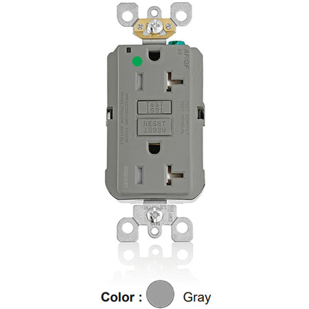 Leviton AGTR2-HGG, SmartlockPro Dual Function AFCI/GFCI Duplex Receptacle, Hospital Grade, Tamper-Resistant, LED Indicator Light, 20A 125V, NEMA 5-20R, Back & Side Wired, Self-Grounding, Gray