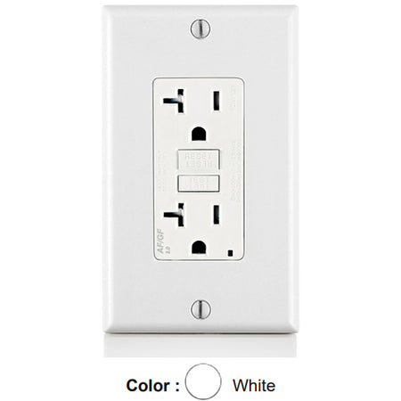 Leviton AGTR2-W, SmartlockPro Dual Function AFCI/GFCI Duplex Receptacle, Tamper-Resistant, LED Indicator Light, Wallplate Included, 20A 125V, NEMA 5-20R, Back & Side Wired, Self-Grounding, White