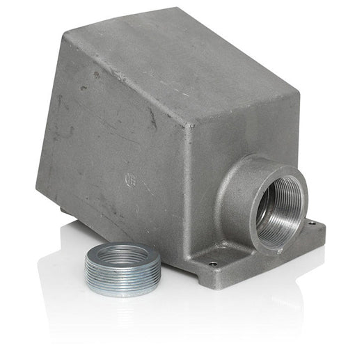Leviton BX100-M, Metallic 15° Angle Back Box for 100A Pin & Sleeve Inlets and Receptacles, Die Cast Aluminum, 2‘’ NPT, Reduced Included