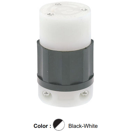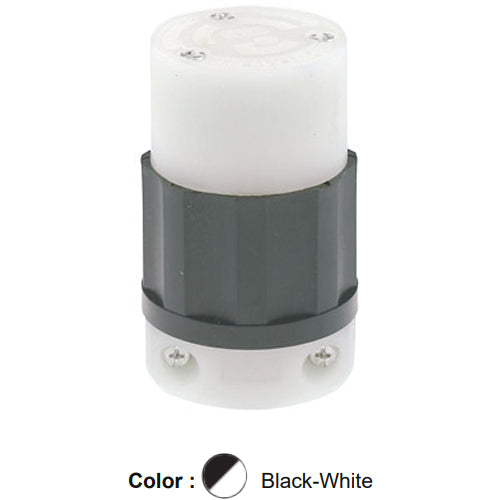 Leviton C2623-PLC, Locking Connector, Industrial Grade, Power Indication, 30A 250V, NEMA L6-30R, 2-Pole, 3-Wire, Grounding, Black/White