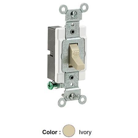 Leviton CS115-2I, Standard Single Pole AC Quiet Toggle Switch, Commercial Specification Grade, 15A 120/277V AC, Grounding, Side Wired, Ivory, 2 Packs
