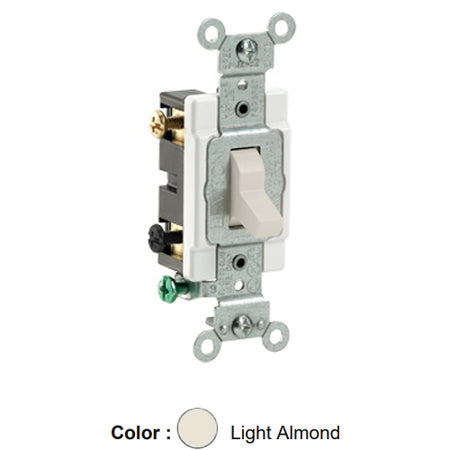 Leviton CS220-2T, Standard Double Pole AC Quiet Toggle Switch, Commercial Specification Grade, 20A 120/277V AC, Grounding, Side Wired, Light Almond