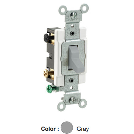 Leviton CS420-2GY, Standard 4-Way AC Quiet Toggle Switch, Commercial Specification Grade, 20A 120/277V AC, Grounding, Side Wired, Gray