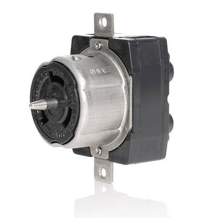 Leviton CS6369, Black & White Single Locking Single Flush Mount Receptacle, Industrial Grade, 50 Amp, 125/250V AC, Non-NEMA, 3-Pole, 4-Wire, Grounding, California Style(CS), Black