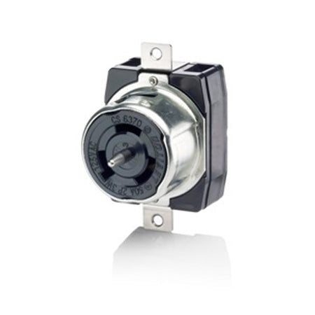 Leviton CS6370, Black & White Locking Single Flush Mount Receptacle, Industrial Grade, 50 Amp, 125V AC, Non-NEMA, 2-Pole, 3-Wire, Grounding, California Style(CS), Black